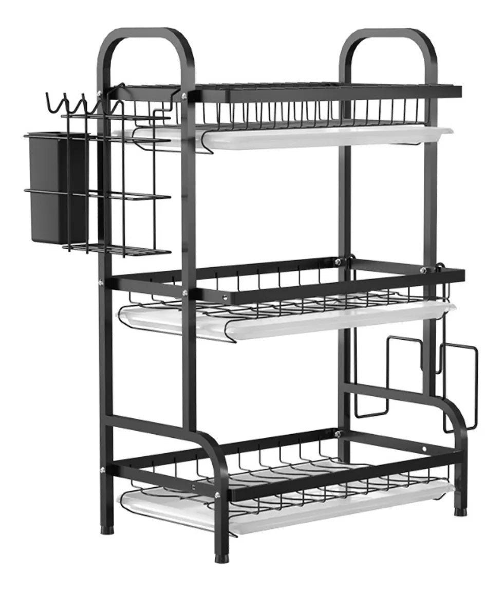 DESCRIPCIÓN Puede colocar platos, plato de sopa, cuchillos, tabla de cortar y el jabón para lavar platos.Fácil de montar y muy resistente para soportar el peso de los platos; diseño minimalista para adaptarse a cualquier estilo de cocina y color