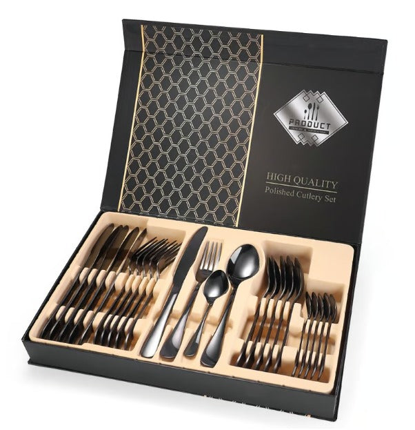 JUEGO DE CUBIERTOS DE ACERO INOXIDABLE 18/10 DE 24 PIEZAS PARA 6 PUESTOS, JUEGO DE CUBIERTOS CON ACABADO ESPEJO CON CAJA DE REGALO